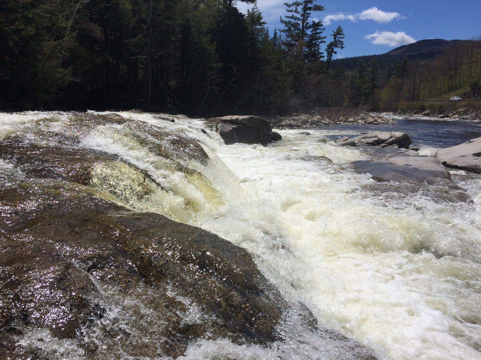 The next stop after The Flume was a Sabbaday Falls. It too was just a few minutes away from The Flume, which was an awesome part of the entire trip. Everything was at most 45 minutes of distance from our hotel. I visited this place exactly two years ago with my other friend. The water runs with such a force that you feel like keep watching this marvelous scene for hours. You can actually feel those water droplets on your clothes and body as you pass by the fall.